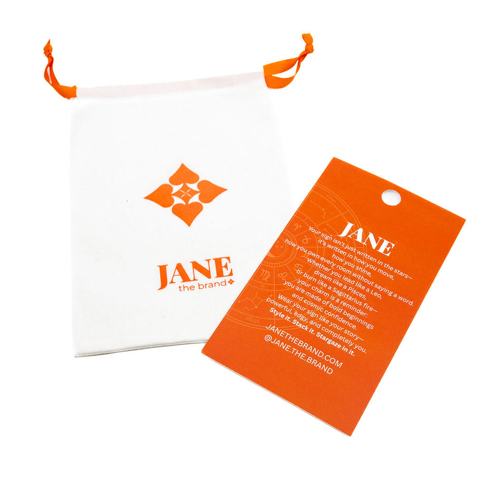 Crafted with golden detail and finished with a mini zodiac symbol tag, these charms are meant to be stacked, styled, and treasured. Each comes with a Jane The Brand organic cotton gift bag and a keepsake card with an empowering message – making them the perfect gift for yourself or someone unforgettable.